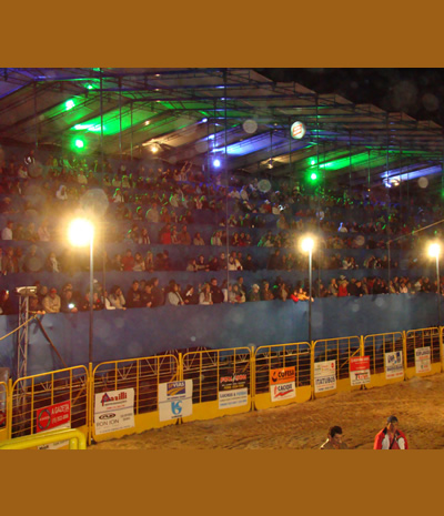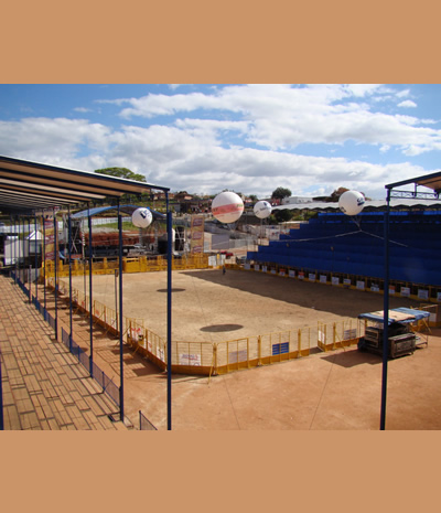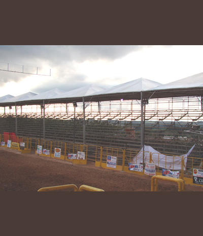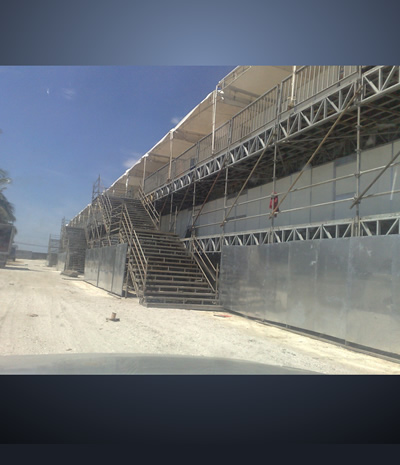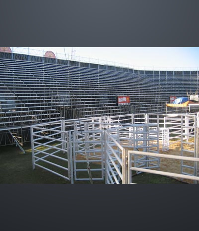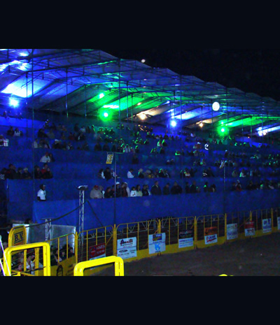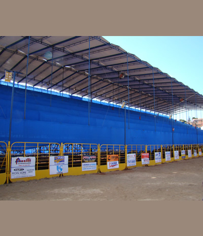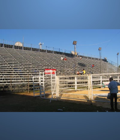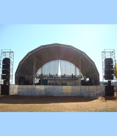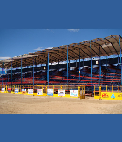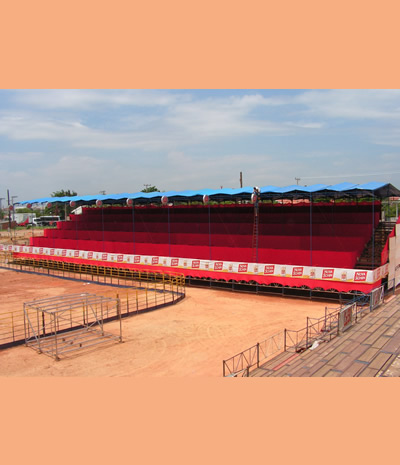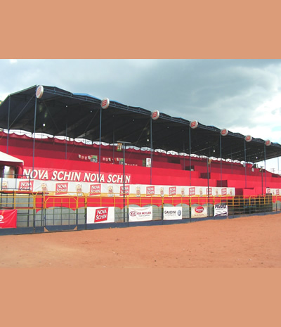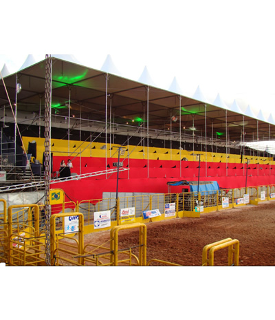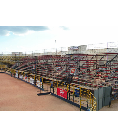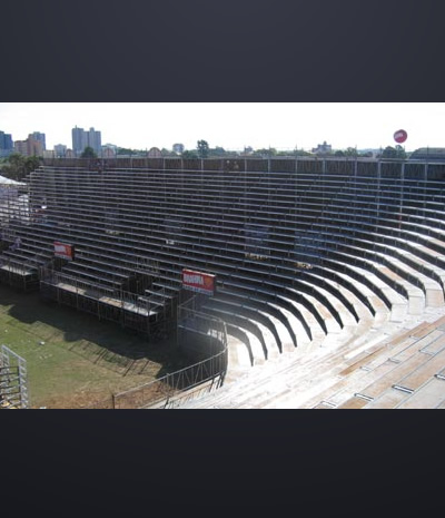 Arquibancadas com estrutura metálica reforçada, com piso e forração em compensado naval para dar maior conforto e segurança para o público. As arquibancadas podem ser descobertas ou cobertas com lona anti-chama plana ou em formato piramidal.