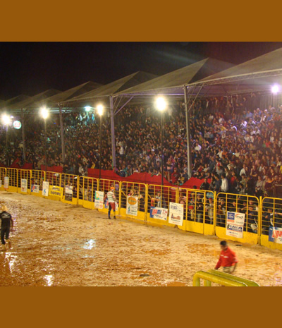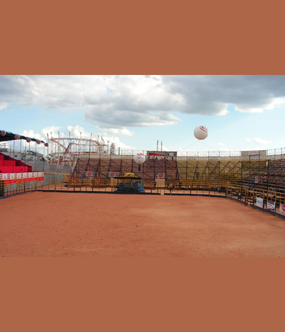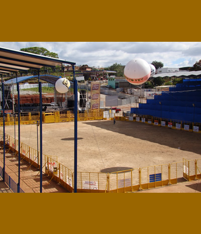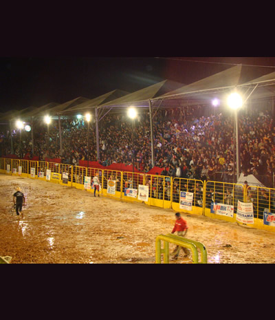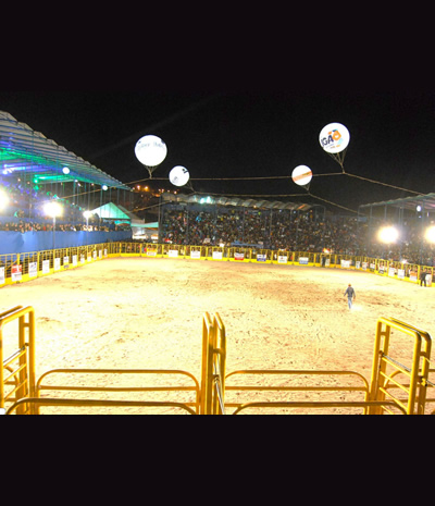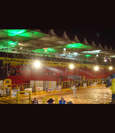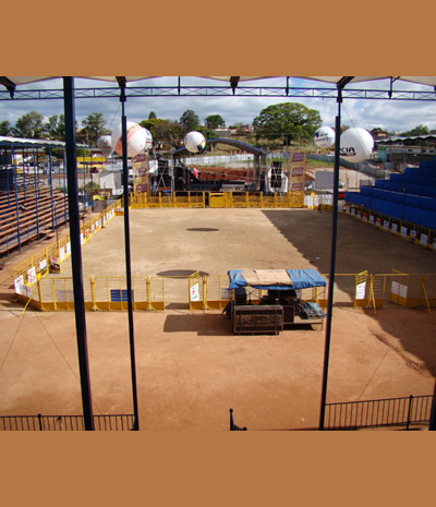 Arena em stylo americano com 06 (seis) bretes, medindo 30mts. de largura por 60mts. de comprimento com iluminação e embarcador para animais.