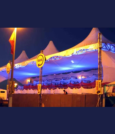 As melhores e mais confortáveis estruturas para áreas vips e camarotes, com coberturas em lona anti-chamas plana ou no formato piramidal, com acabamento interno em lycra. As dimensões podem ser variadas e definidas conforme as necessidades do cliente.