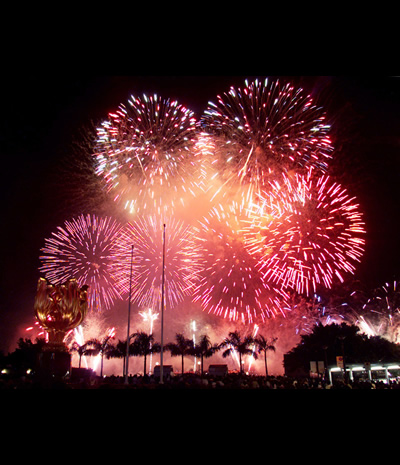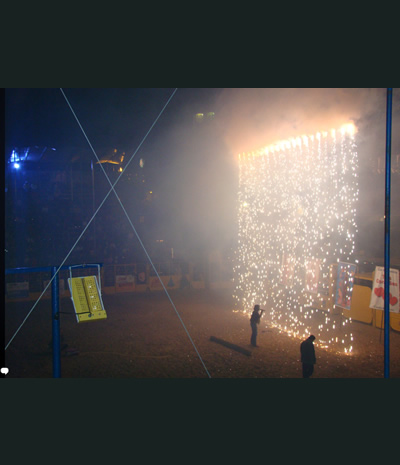 Show pirotécnico com queima de fogos de artifício importados, com pouca fumaça e muitíssimo efeito. Todo e qualquer tipo de fogos de artifício com todos os itens necessários para total segurança do público.