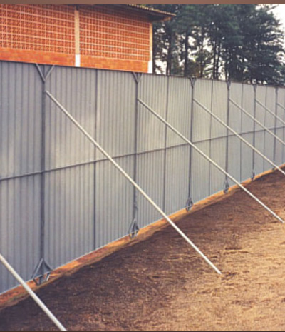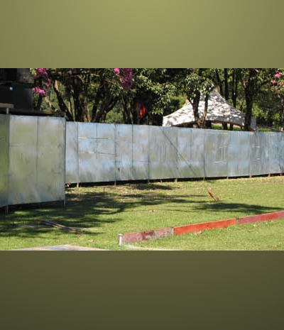 Placas metálicas com 2,20m de altura com travamento em mão francesa, resistente, bonito e prático, necessita de perfuração no solo para sua fixação, utilizado em várias formas sempre com a intenção de isolar e proteger ambientes.